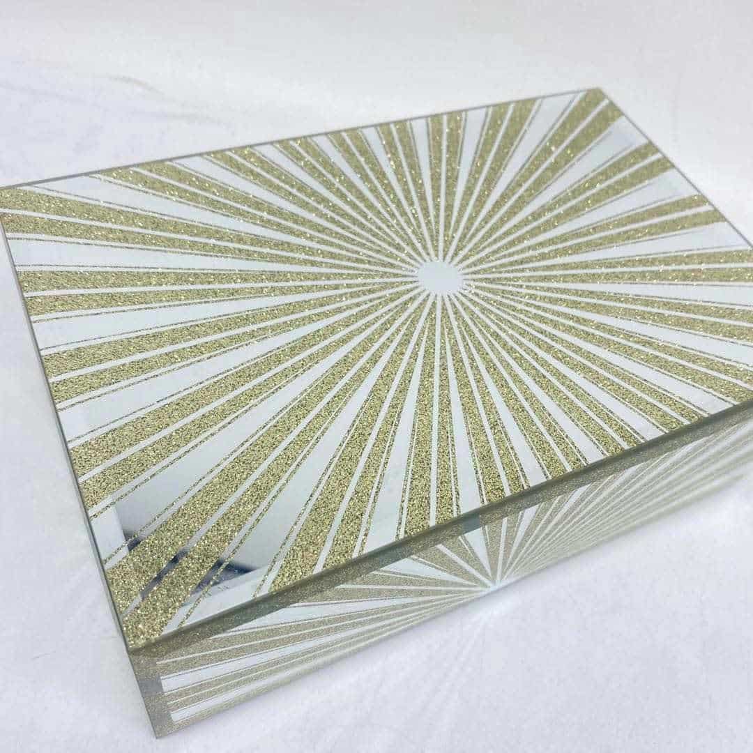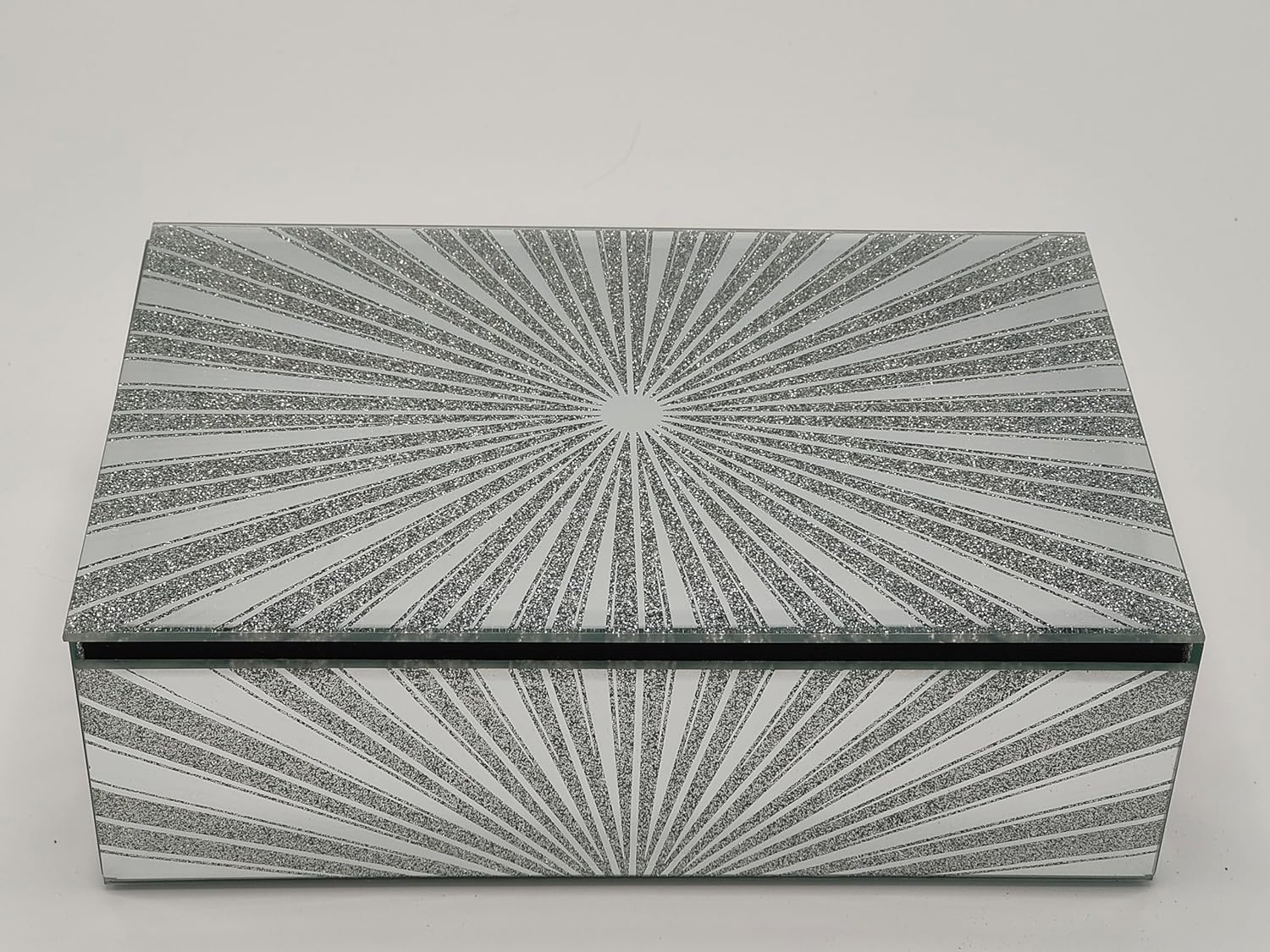 EagleWiz Glitter SunRays Glass Mirrored Jewellery Box Sunburst Modern Silver Trinket Storage Box Earrings Rings Jewelry Keepsake Display Case Birthday, Wedding, Mothers Days Gifts
