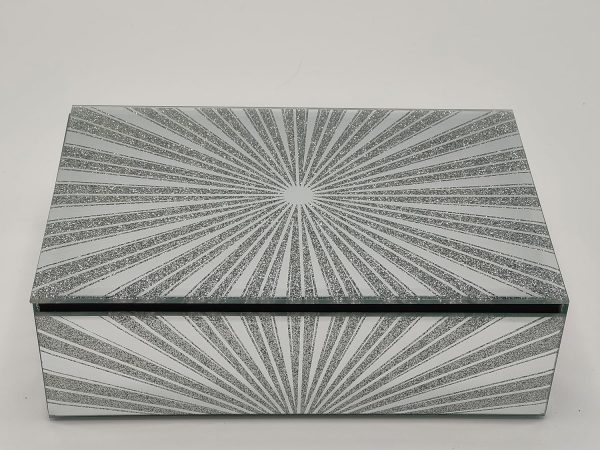 Shows opulent class, our Silver Bling Sunrays style encircled with Glitter sunrays attractive design of the Jewellery box, Gorgeous storage box can be used for Tissues or Jewellery items-The box cover surface center is decorated with a sparkling crushed diamante area to add a sparkle touch. Is a luxury and modern way to decor your room and organizer your jewelry. Simply stunning addition to any sparkle Collection, bedroom or any place to sparkle in style.
