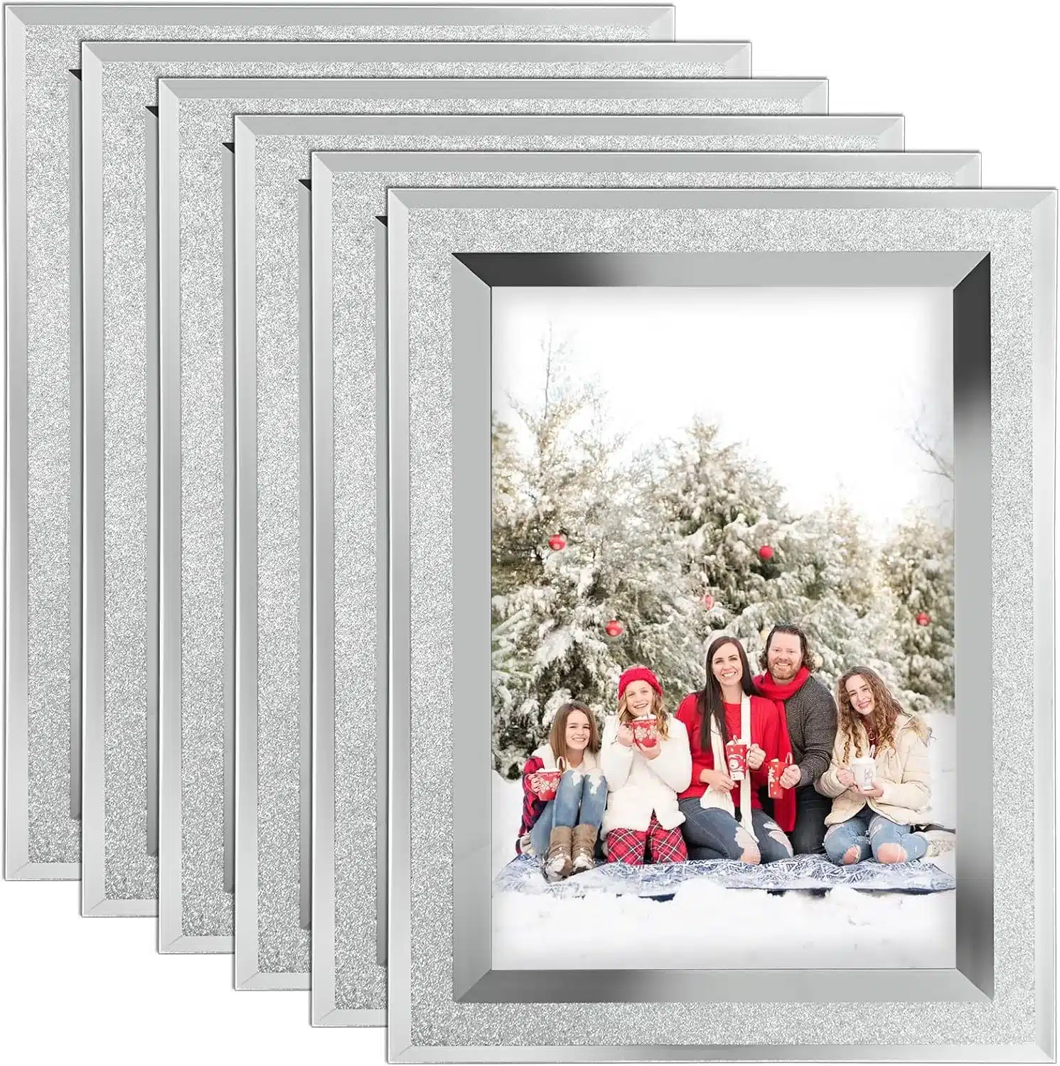 • JMIATRY 6×4 Picture Frames Set of 6, Silver Sparkle Glass Photo Frames, Glass Photo Frames for Tabletop Display and Home Decoration