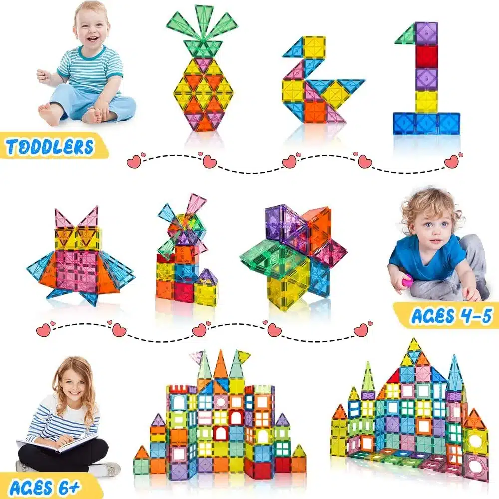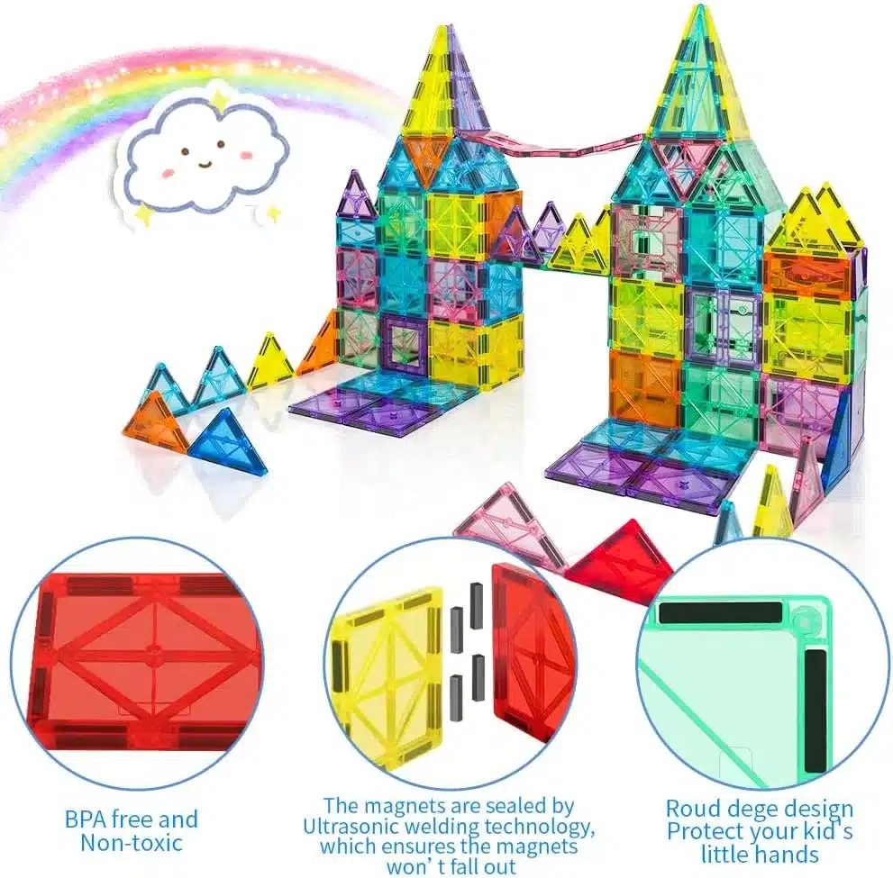 • [Perfect Gift for Girls and Boys] – The best gift for children and can be used in school, family activities, special gatherings, and a lot more. Comes with a storage bag so you can organize and keep them without a hassle. Click ‘Add to Cart’ now and make our kids magnetic tiles building toys an excellent gift for girls and boys for birthday parties, Christmas, and more!
