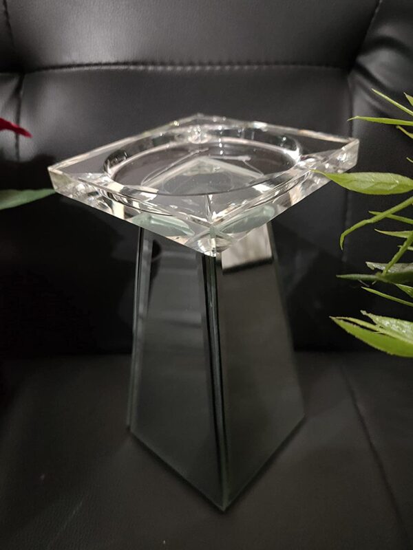Mirror Glass Candle Holder The metallic finish is fabulous, and is perfect for anyone who’s looking to add some style to their home decorations. Slight resemble pyramid style.